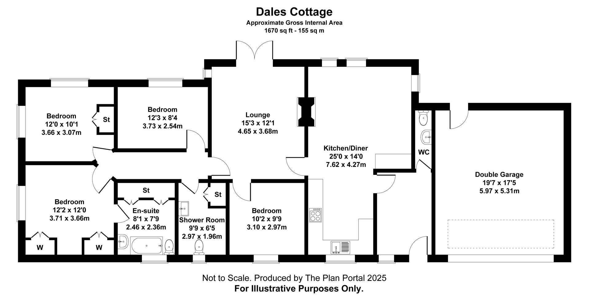 Window to front, WC, basin and large shower